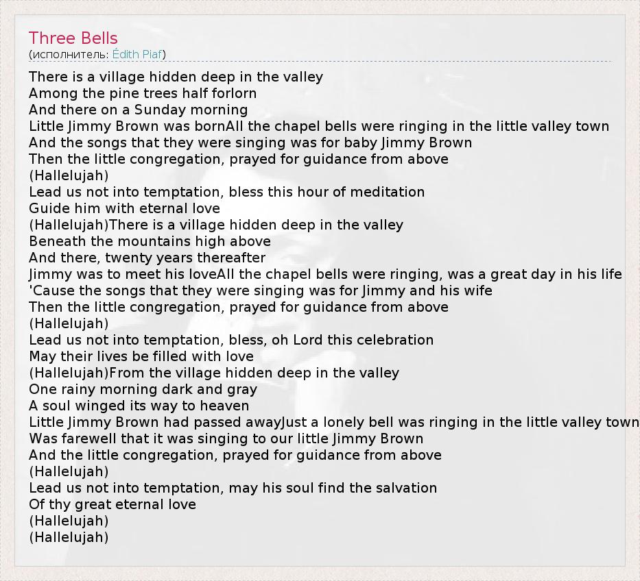 Little Jimmy Brown had passed awayJust a lonely bell was ringing in the little valley town