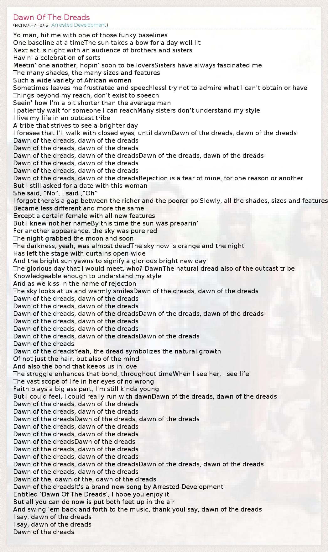 Dawn of the dreadsIt's a brand new song by Arrested Development