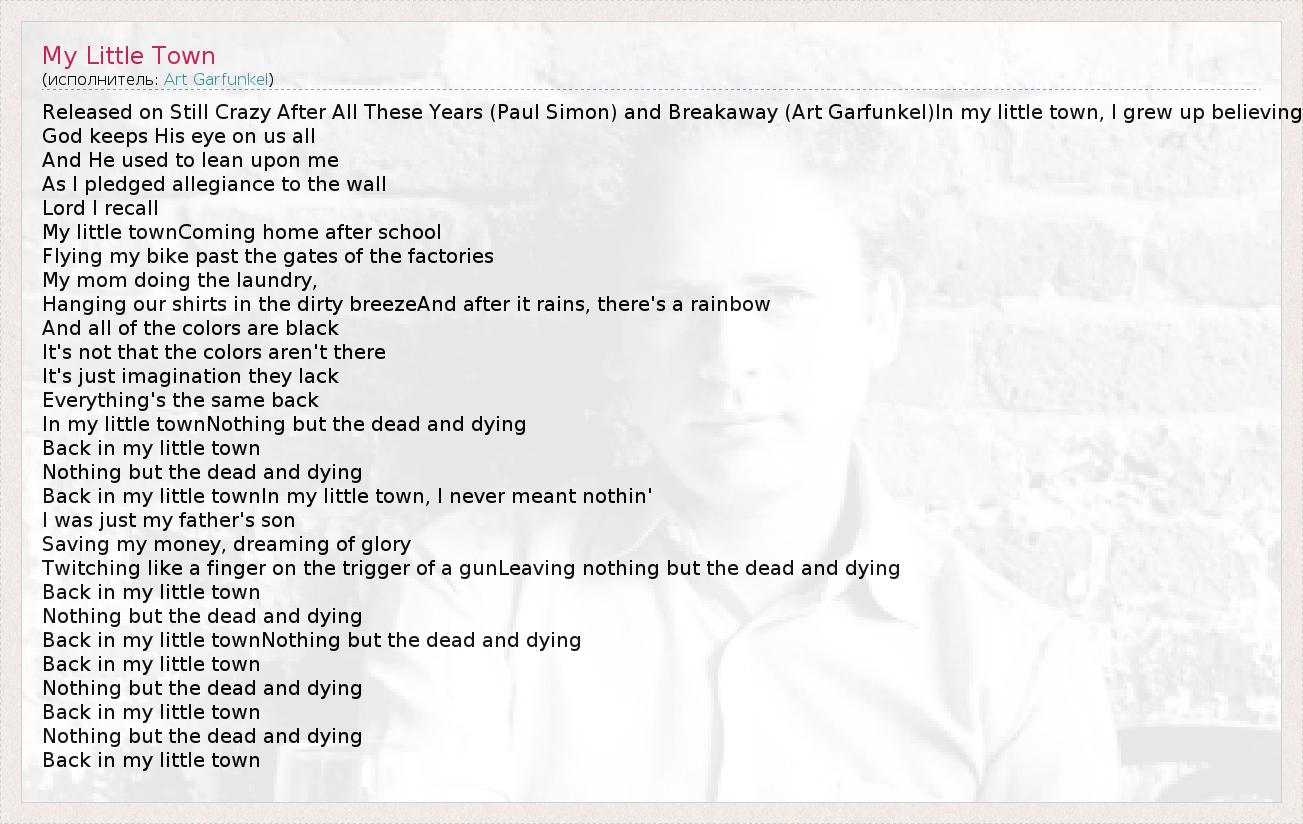 А как ты думаешь, о чем песня "My Little Town" ?