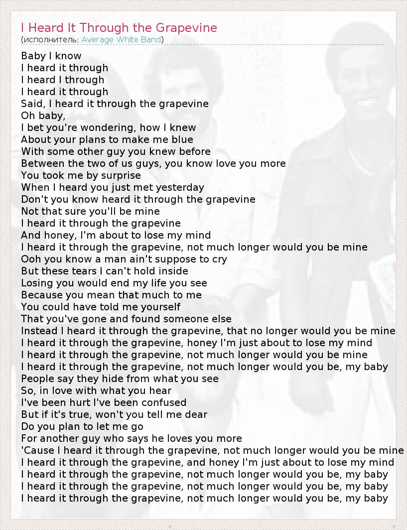 А как ты думаешь, о чем песня "I Heard It Through the Grapevine" ?