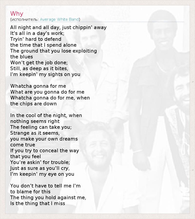 Это интересно:Несмотря на свое происхождение (Шотландия) "Average white band" достигли успеха, играя несвойственный для этой страны соул и фанк, характерные скорее для чернокожих музыкантов с берегов Миссисипи. В оригинальный состав "Средней белой банды" вошли опытные джазмены и ритм-энд-блюзовцы Алан Горри (р. 19 июля 1946, Глазго; вокал, бас), Хэмиш Стюарт (р. 8 октября 1949, Глазго; гитара), Оуэн "Онни"... продолжение