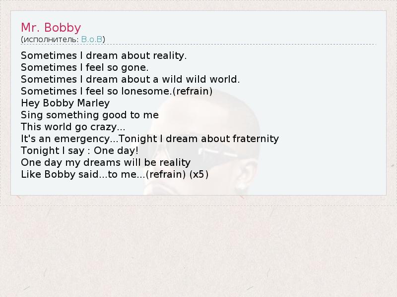 А как ты думаешь, о чем песня "Mr. Bobby" ?