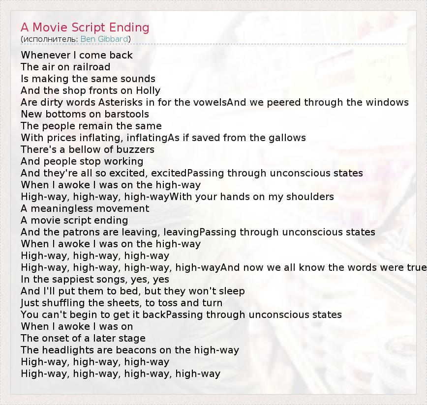 А как ты думаешь, о чем песня "A Movie Script Ending" ?