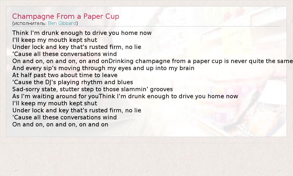 ГлавнаяИсполнителиBen GibbardChampagne From a Paper Cup