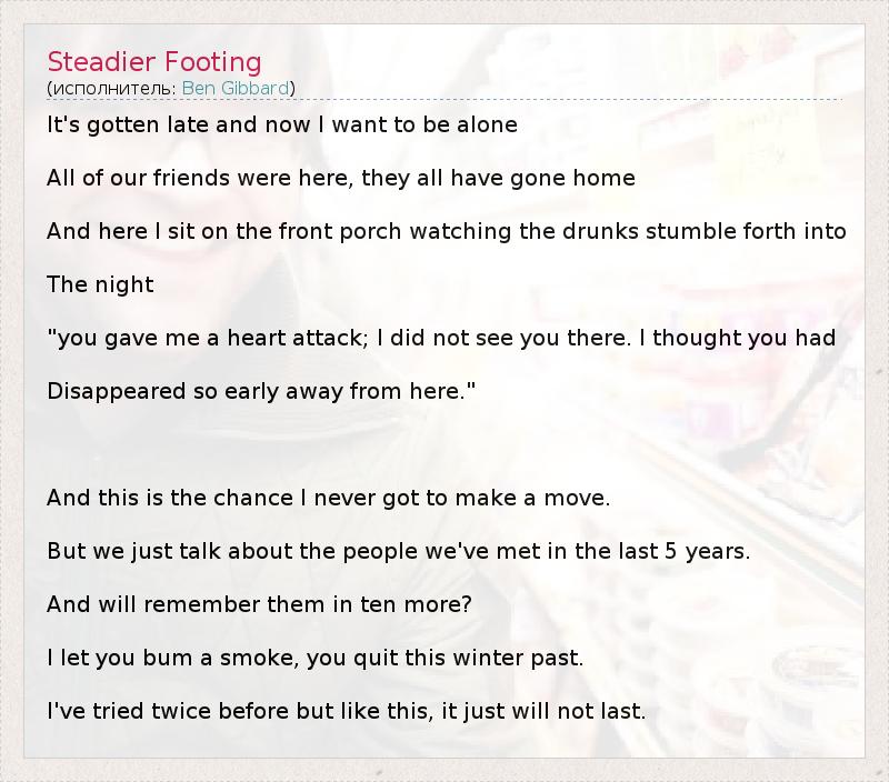 А как ты думаешь, о чем песня "Steadier Footing" ?