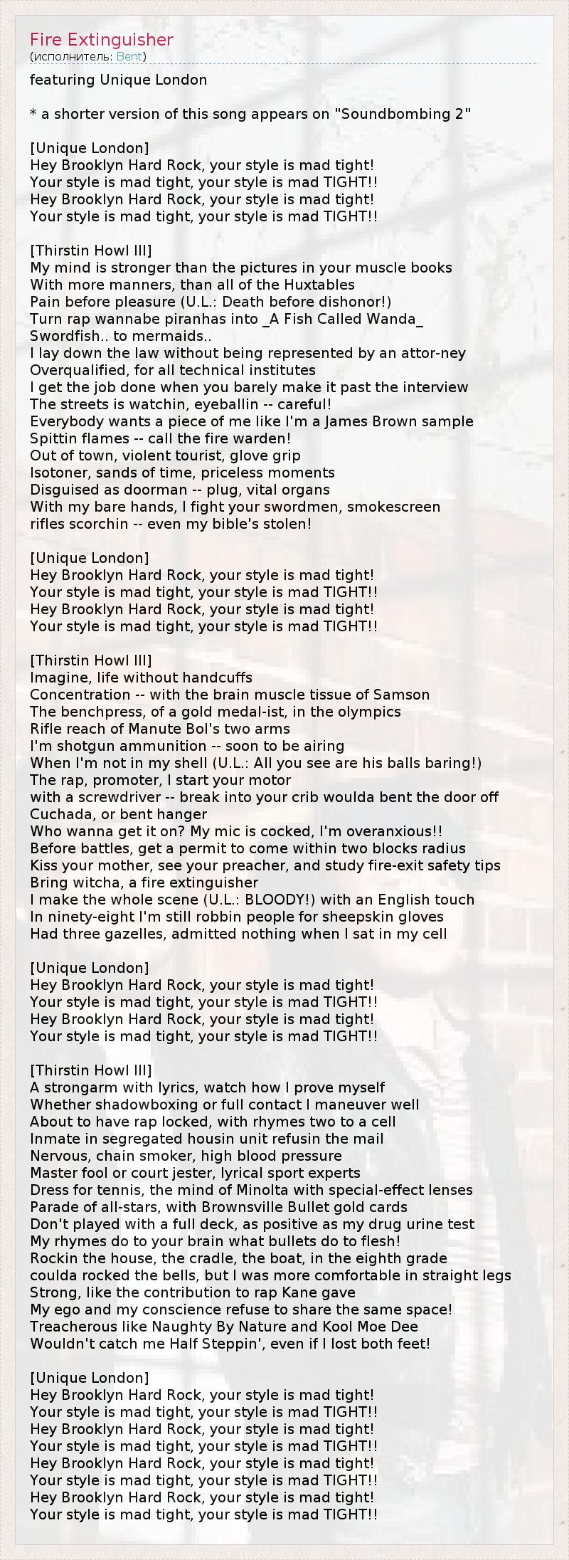 А как ты думаешь, о чем песня "Fire Extinguisher" ?