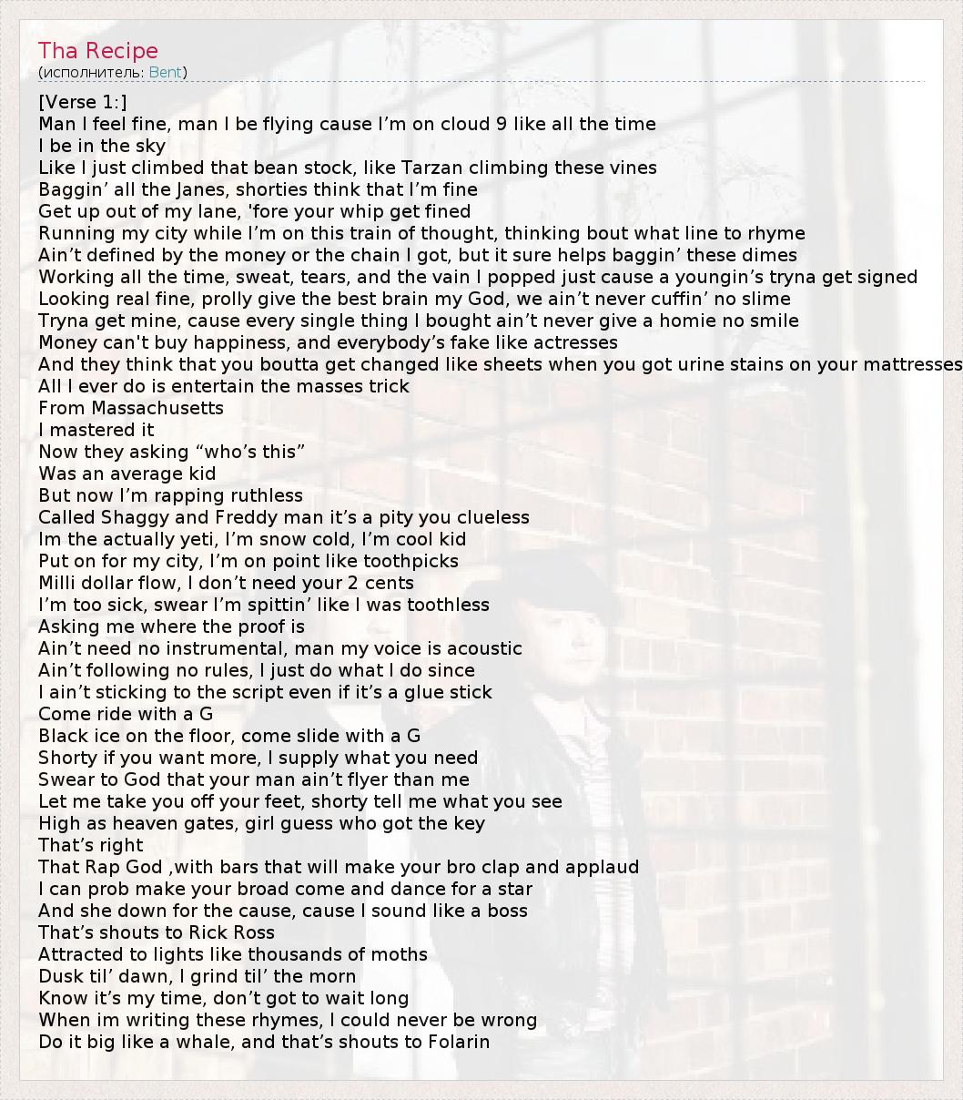 А как ты думаешь, о чем песня "Tha Recipe" ?