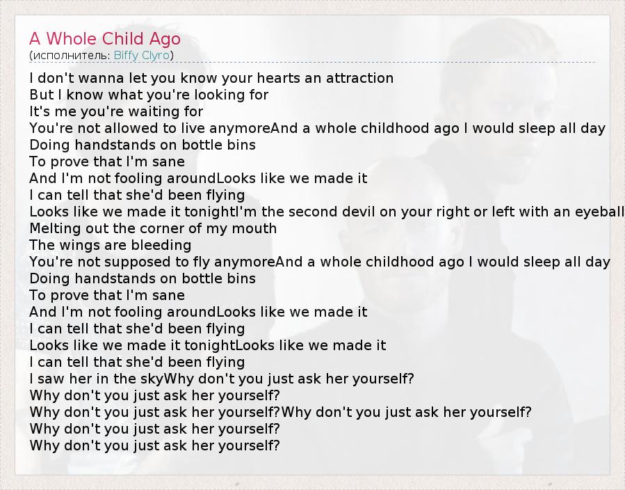 А как ты думаешь, о чем песня "A Whole Child Ago" ?