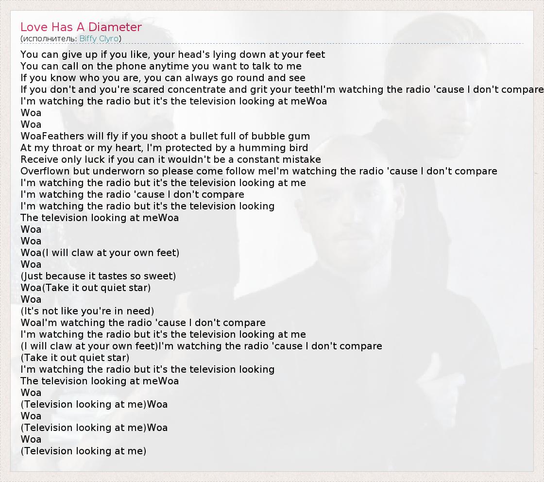 А как ты думаешь, о чем песня "Love Has A Diameter" ?