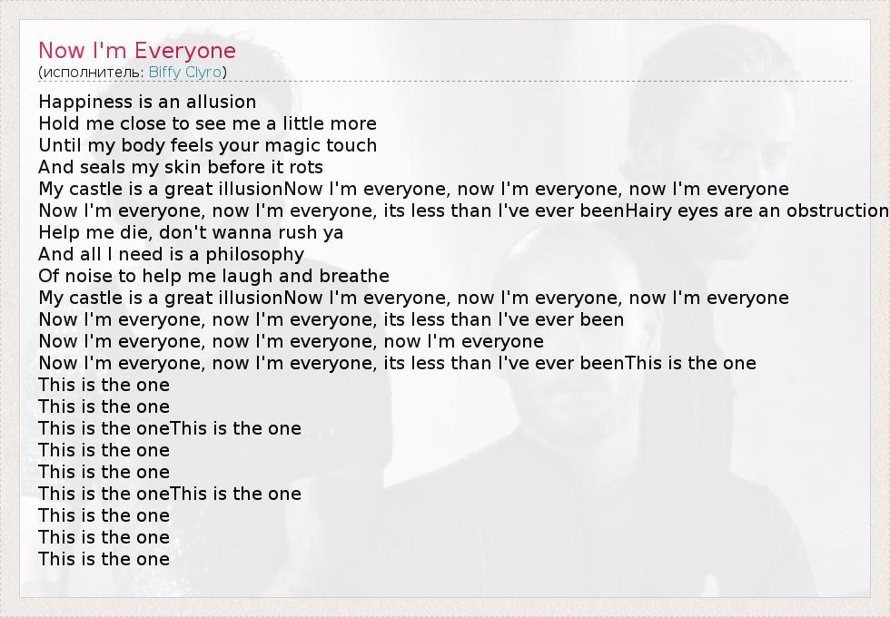 А как ты думаешь, о чем песня "Now I'm Everyone" ?