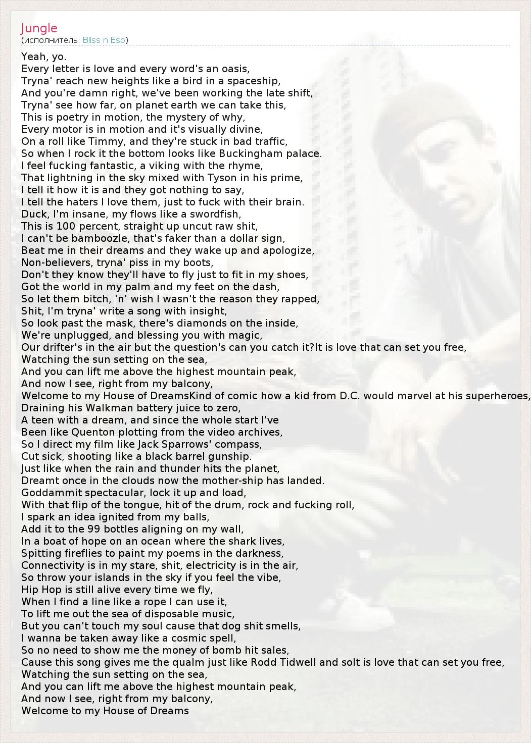 А как ты думаешь, о чем песня "Jungle" ?