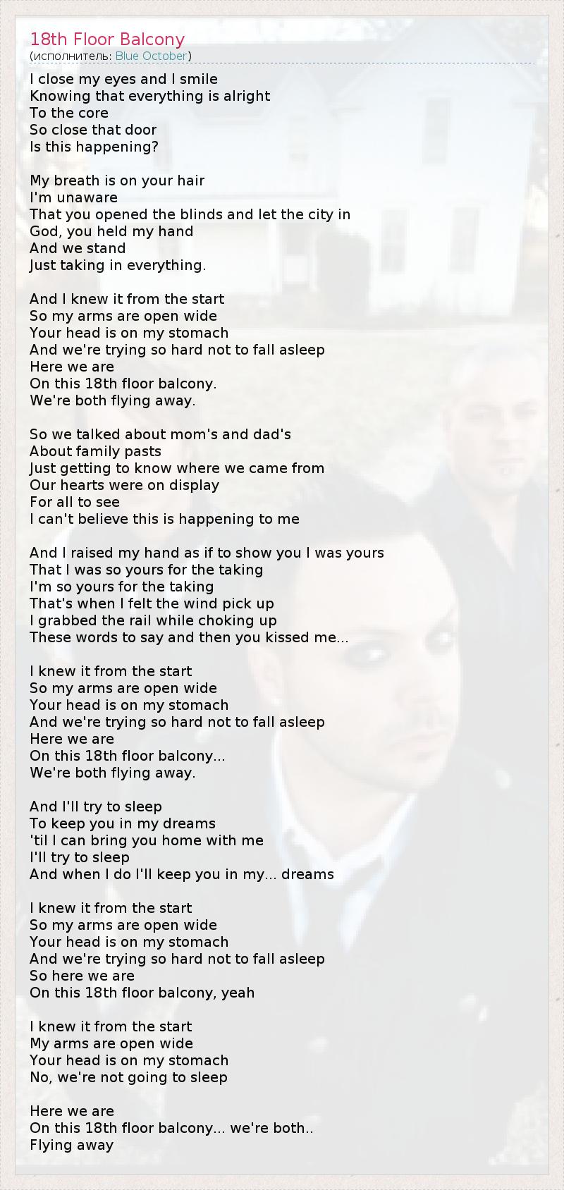А как ты думаешь, о чем песня "18th Floor Balcony" ?