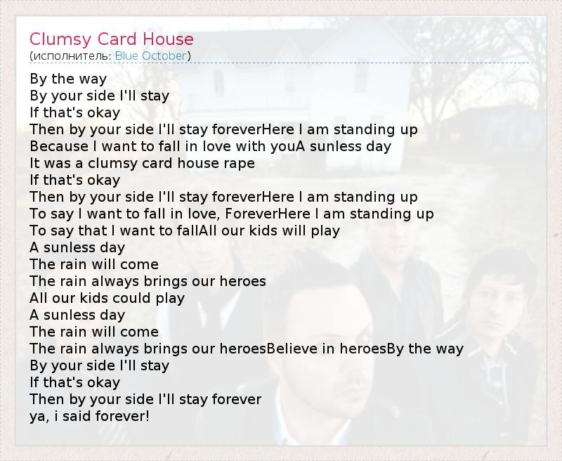By the way By your side I'll stay If that's okay Then by your side I'll stay foreverHere I am standing up Because I want to fall in love with youA sunless day It was a clumsy card house rape If that's okay Then by your side I'll stay foreverHere I am standing up To say I want to fall in love, ForeverHere I am standing up To say that I want to fallAll our kids will play A sunless day The rain will come The rain always brings our heroes All our kids could play A sunless day The rain will come The rain always brings our heroesBelieve in heroesBy the way By your side I'll stay If that's okay Then by your side I'll stay forever ya, i said forever!