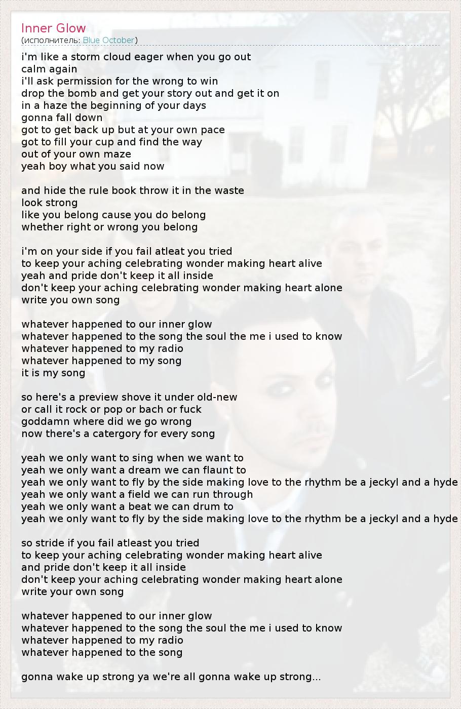 А как ты думаешь, о чем песня "Inner Glow" ?