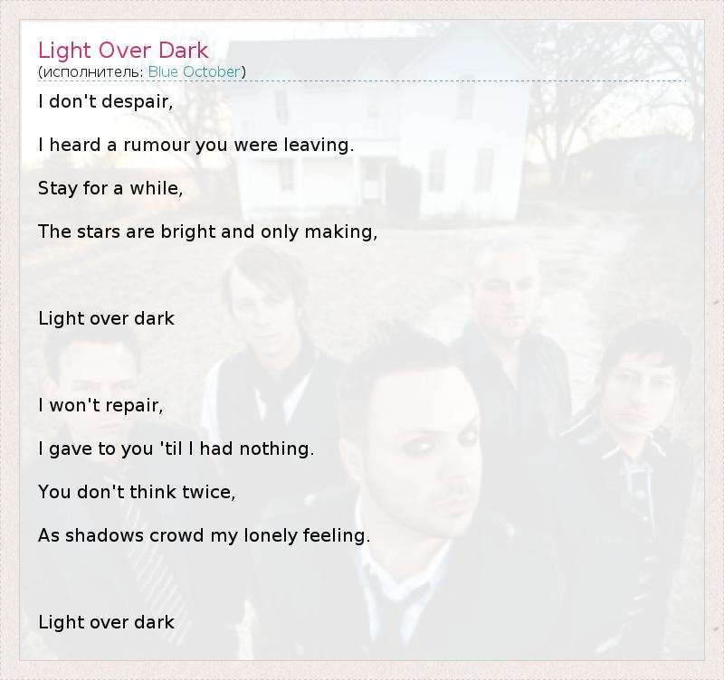 А как ты думаешь, о чем песня "Light Over Dark" ?