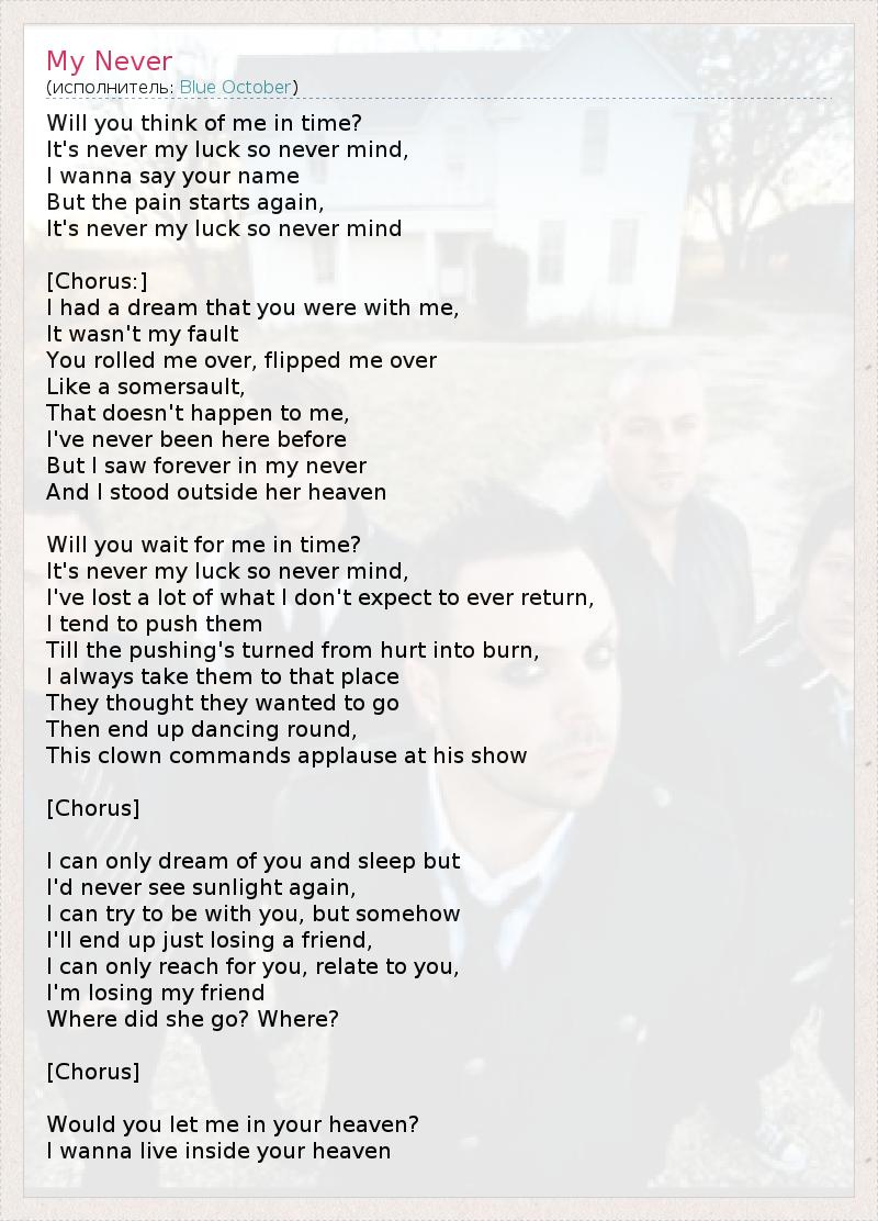 Список песен состоит из нескольких новых композиций, а также некоторых песен, которые Blue October и 5591 исполняли ранее на концертах. Например, концертная версия Weight of the World была включена в альбом Argue with a Tree…. Песня Say It была впервые исполнена 27 апреля 2008 года на «Edgefest». В тот день Стив Лиллиуайт впервые увидел выступление Blue October, а песня Say It побудила его стать продюсером следующего альбома группы. Во время выступлений 4 и 5 июля 2008 года Джастин Фёрстенфелд сказал, что Say It и Weight of the World появятся на новом альбоме. 23 июля во время веб-чата с поклонниками, Джастин сообщил, что на альбоме также появится песня Dirt Room, одна из новых песен и одна из любимых композиций самого музыканта. Она была впервые исполнена в декабре 2008 года, и через некоторое время стала первым синглом с альбома. Цифровой релиз состоялся 23 декабря 2008 года. Кроме того, две песни Blue Skies и My Never впервые были исполнены во время концертов в поддержку выхода книги Рассвет писательницы Стефани Майер. 7 января 2009 года группа выпустила песню Graceful Dancing в качестве подарка подписчикам новостей с официального сайта. Песня Kangaroo Cry была выпущена 10 февраля 2009 года в саундтреке к сериалу NCIS. Остальные песни были представлены во время концертов незадолго до выхода альбома.