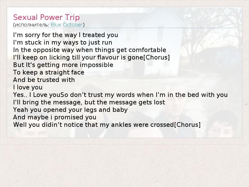 I'm sorry for the way I treated you I'm stuck in my ways to just run In the opposite way when things get comfortable I'll keep on licking till your flavour is gone[Chorus] But It's getting more impossible To keep a straight face And be trusted with I love you Yes.. I Love youSo don't trust my words when I'm in the bed with you I'll bring the message, but the message gets lost Yeah you opened your legs and baby And maybe i promised you Well you didin't notice that my ankles were crossed[Chorus]