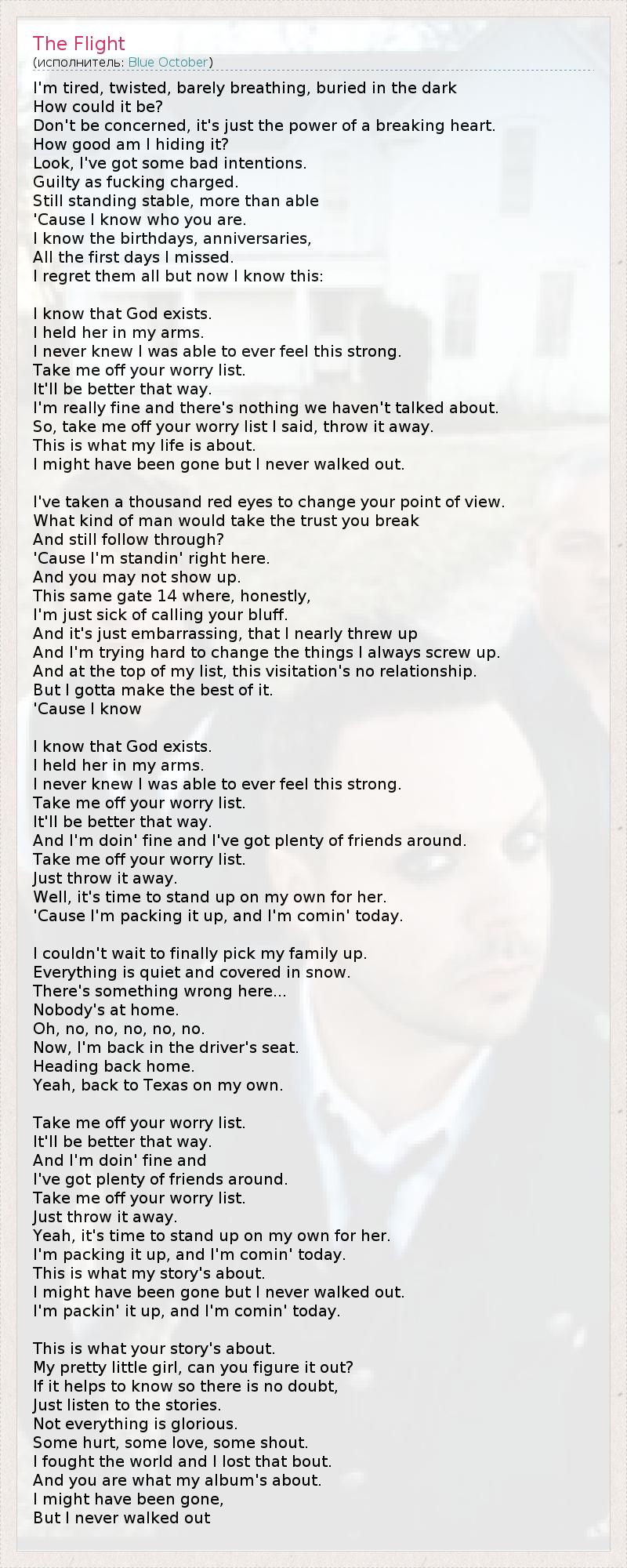 Это интересно:Blue October (с англ. — печальный октябрь) — американская группа из Хьюстона, штат Техас, играющая в стиле альтернативный рок. Группа создана в 1995 году и в настоящее время её коллектив составляют Джастин Фёрстенфелд (ведущий солист, ритм-гитара), Джереми Фёрстенфелд (барабаны, перкуссия), Райан Делахуси (скрипка, виолончель, мандолина, фортепиано, бэк-вокал) и Мэтт Новески (бас-гитара, бэк-вокал).Создание... продолжение