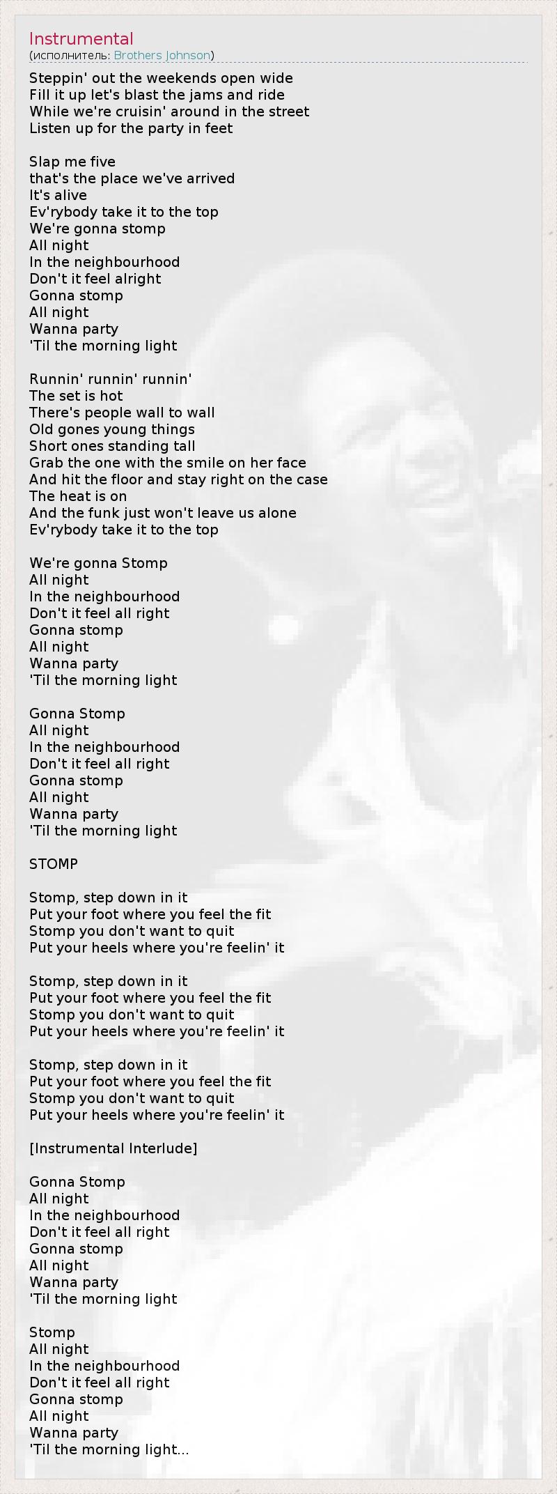 Это интересно:The Brothers Johnson в конце 70-х выпустили три альбома - это классика oldschool. Лучшие композиции: Stomp, Aint We Funkin' Now, Strawberry Letter #23 и др. Дуэт был одним из проектов гениального музыканта и продюсера Quincy Jones.