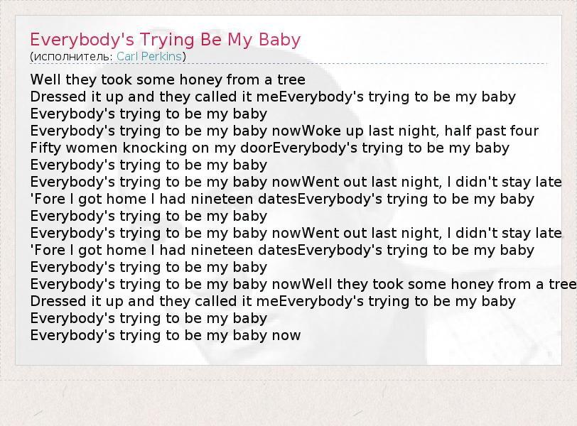 А как ты думаешь, о чем песня "Everybody's Trying Be My Baby" ?