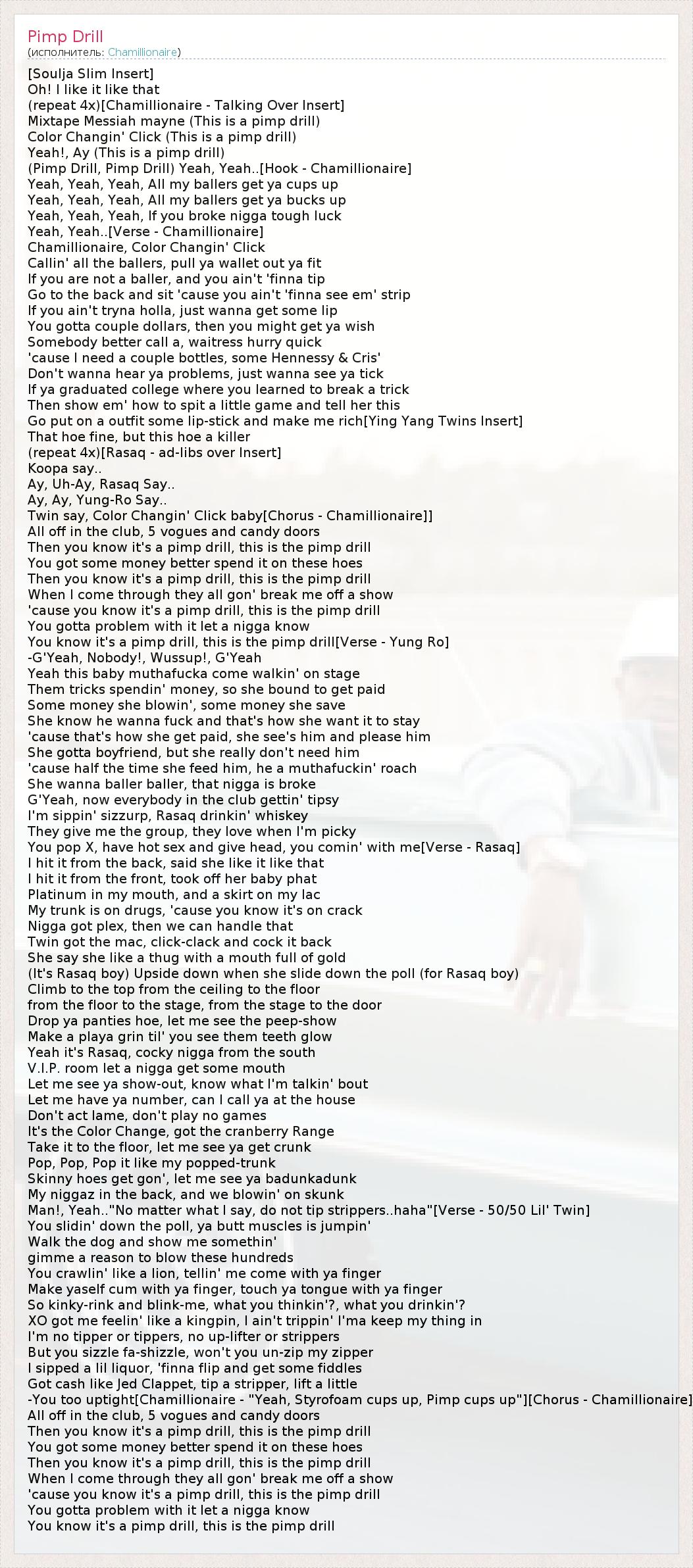 А как ты думаешь, о чем песня "Pimp Drill" ?