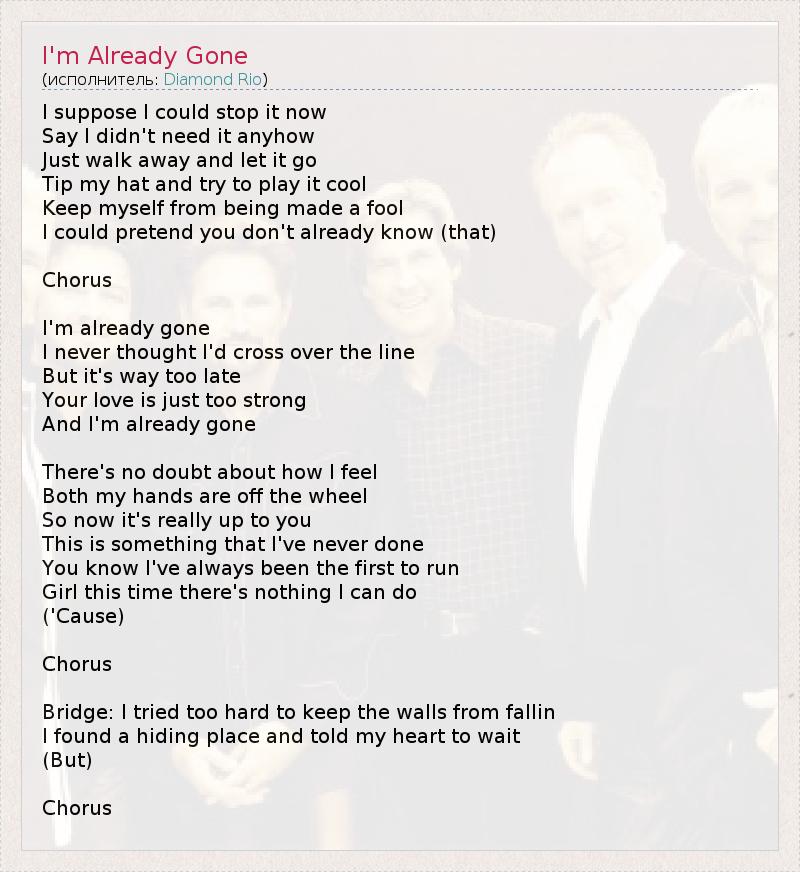 А как ты думаешь, о чем песня "I'm Already Gone" ?