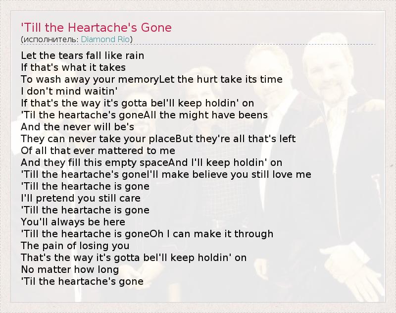 А как ты думаешь, о чем песня "'Till the Heartache's Gone" ?