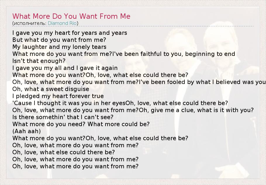 А как ты думаешь, о чем песня "What More Do You Want From Me" ?