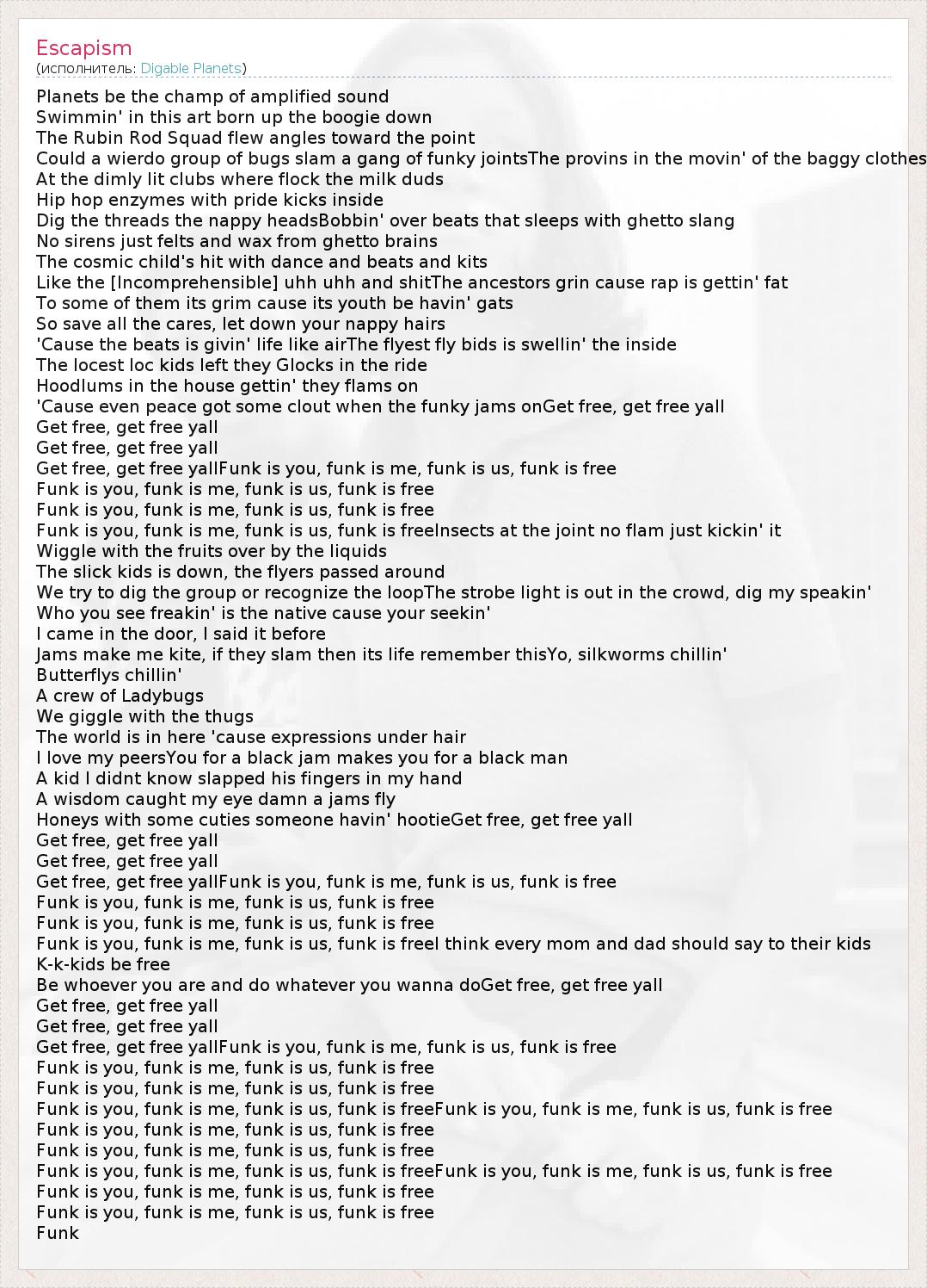 Get free, get free yallFunk is you, funk is me, funk is us, funk is free