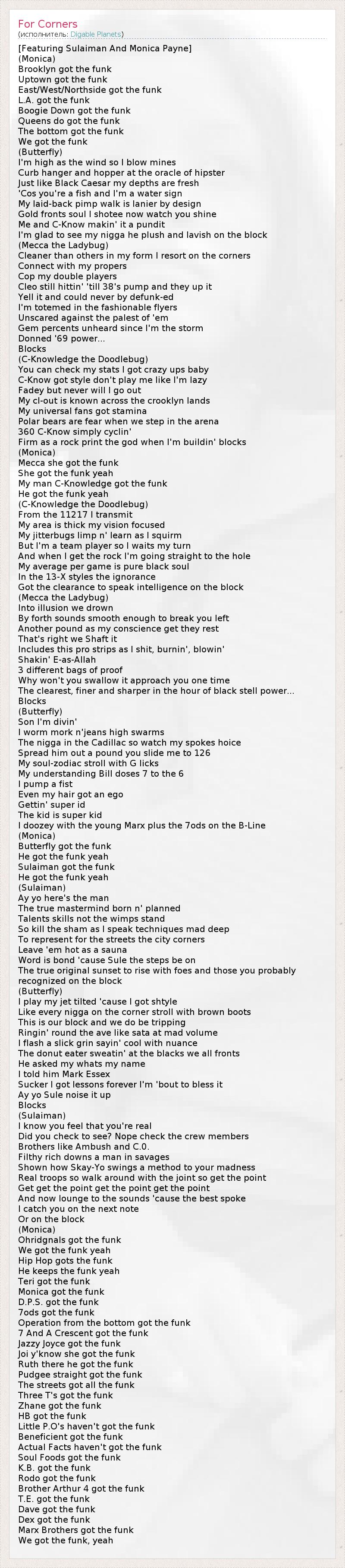 Это интересно:Частенько бывает, что какая-то группа, появившись, выпускает несколько альбомов и как будто куда-то пропадает. Проходят годы, и она попадает в зал славы прошлых лет. Так было с A Tribe Called Quest, так было с Digital Underground, так было со многими другими и точно так же было с Digable Planets. И мало кто задумывался или обращал внимание, что после официальной кончины... продолжение