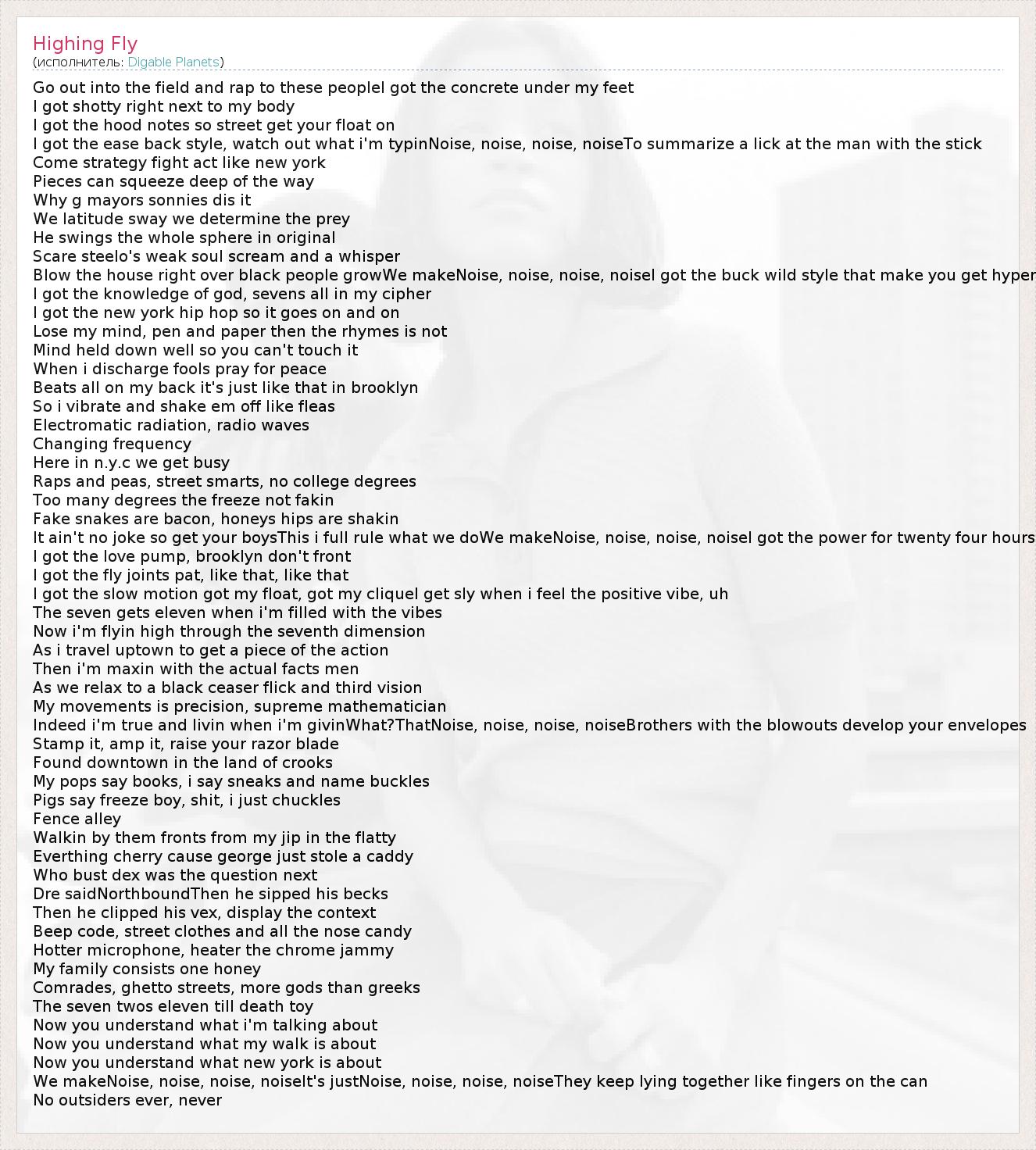 А как ты думаешь, о чем песня "Highing Fly" ?