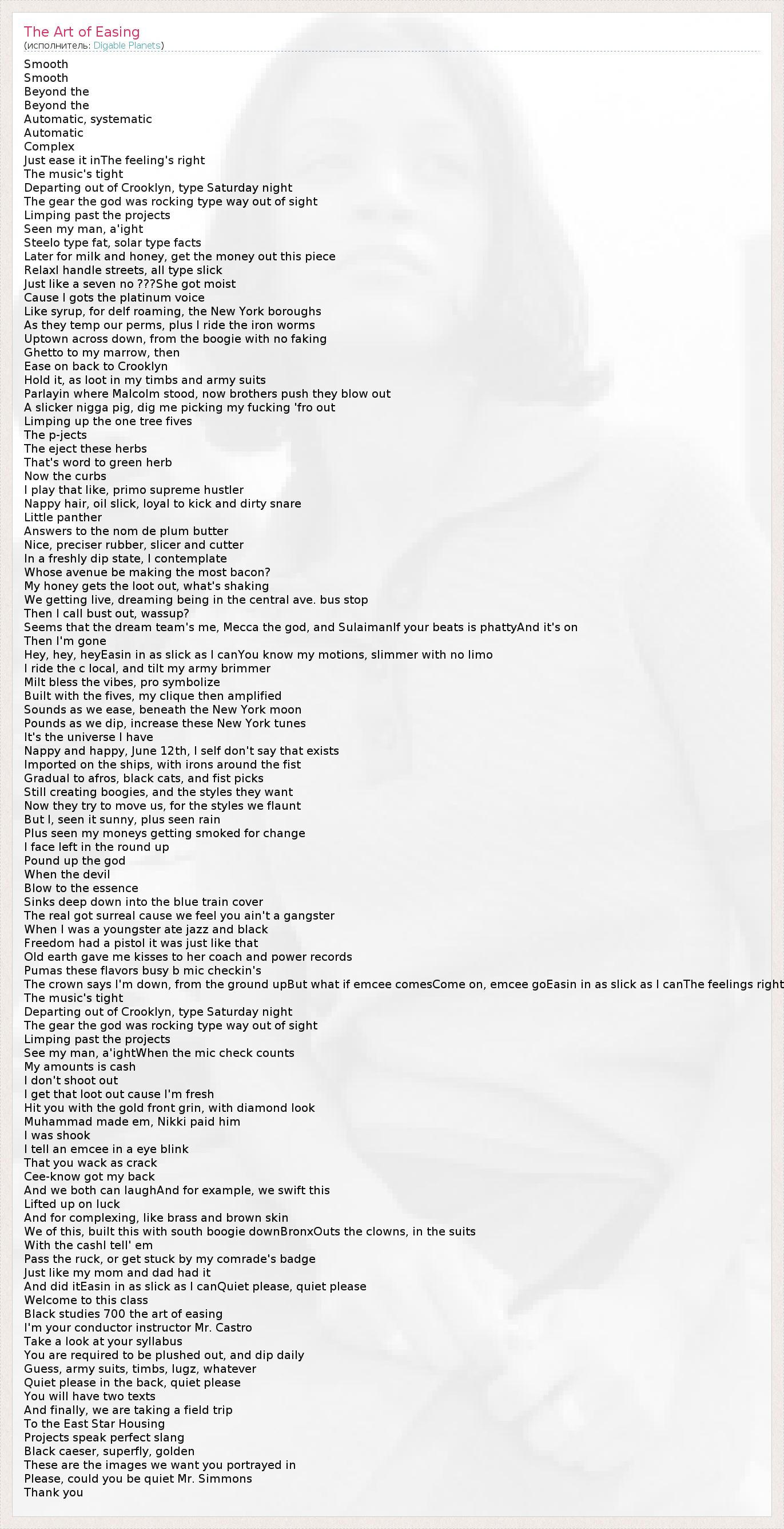 Это интересно:Частенько бывает, что какая-то группа, появившись, выпускает несколько альбомов и как будто куда-то пропадает. Проходят годы, и она попадает в зал славы прошлых лет. Так было с A Tribe Called Quest, так было с Digital Underground, так было со многими другими и точно так же было с Digable Planets. И мало кто задумывался или обращал внимание, что после официальной кончины... продолжение