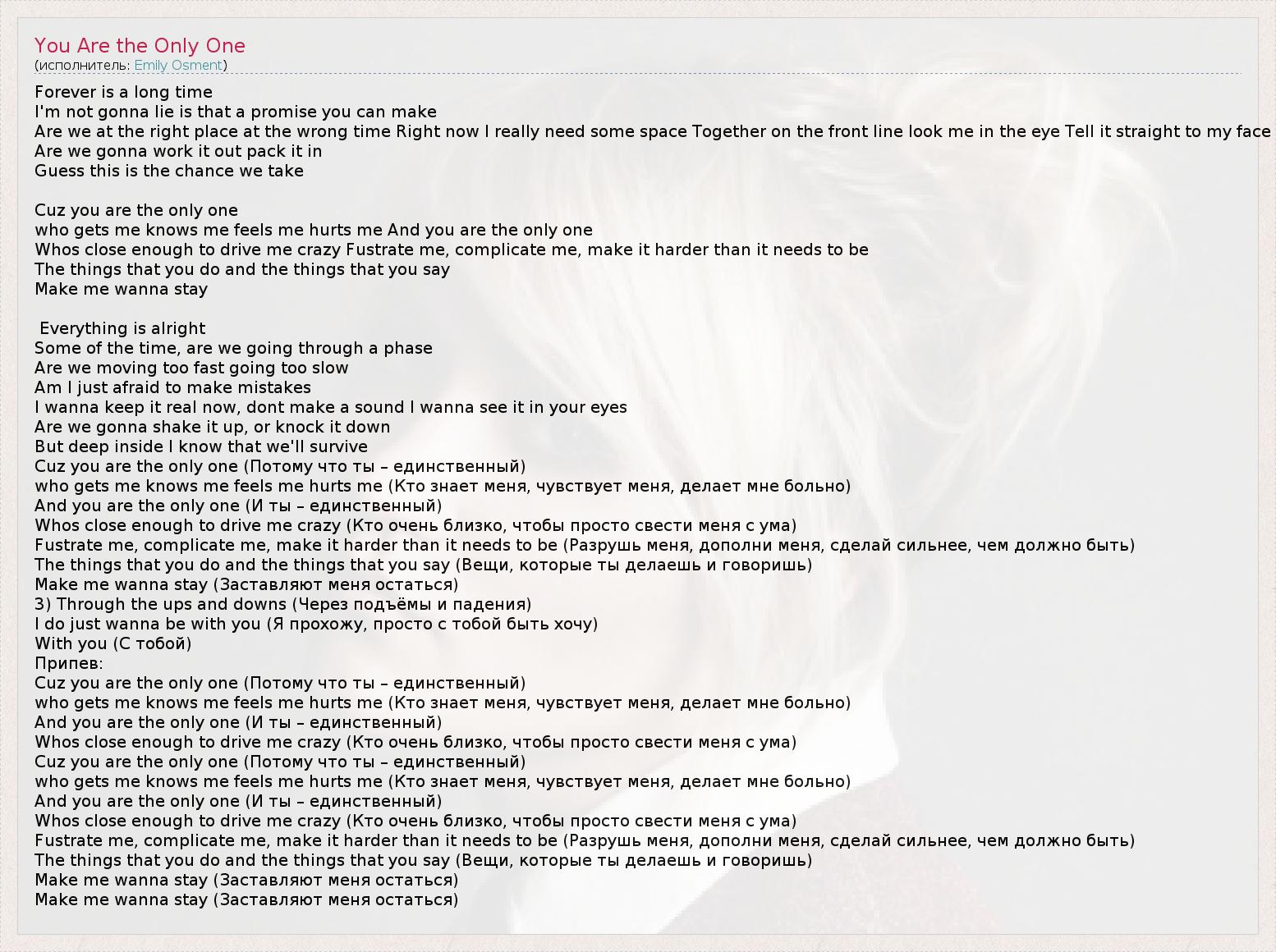 А как ты думаешь, о чем песня "You Are the Only One" ?