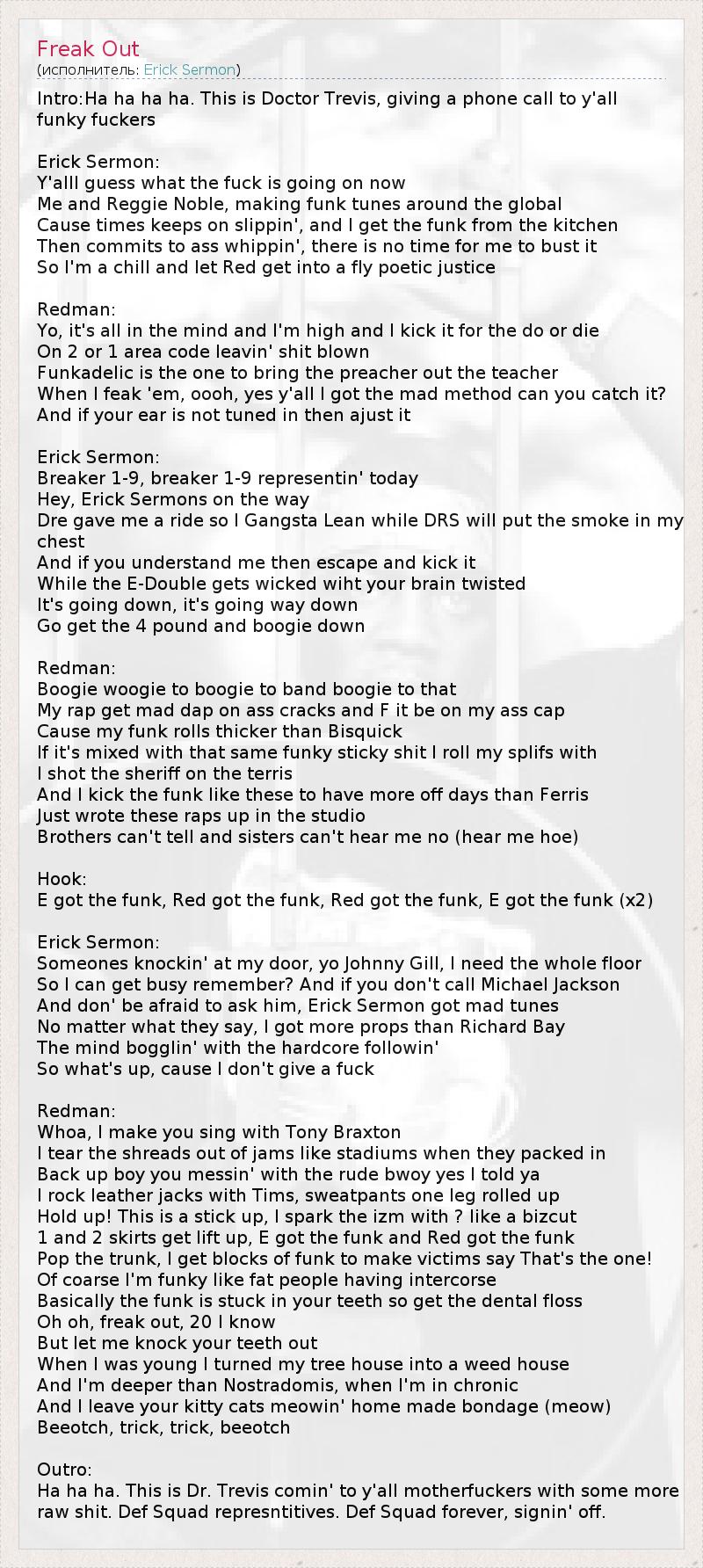 E got the funk, Red got the funk, Red got the funk, E got the funk (x2)