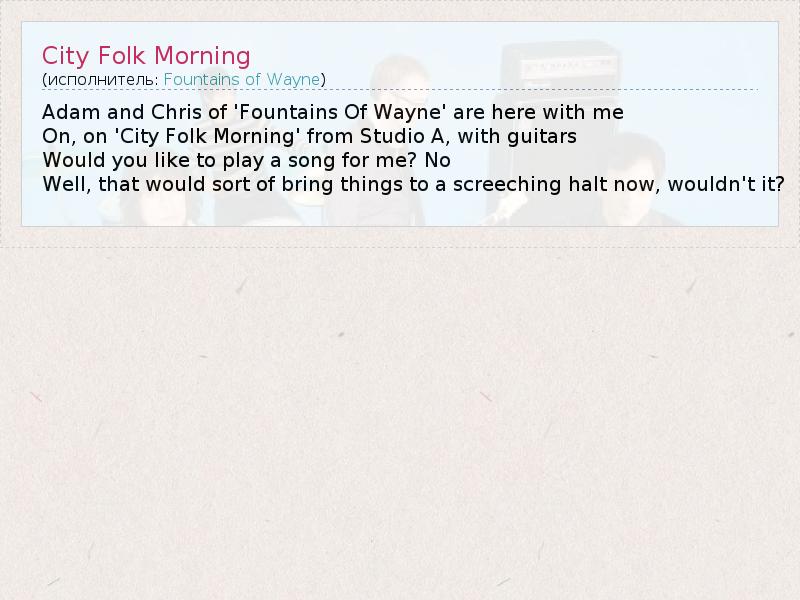 А как ты думаешь, о чем песня "City Folk Morning" ?