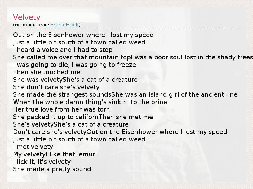 А как ты думаешь, о чем песня "Velvety" ?