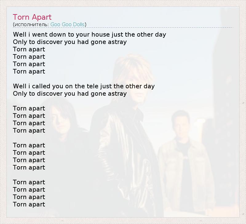 Well i went down to your house just the other day Only to discover you had gone astray Torn apart Torn apart Torn apart Torn apart Well i called you on the tele just the other day Only to discover you had gone astray Torn apart Torn apart Torn apart Torn apart Torn apart Torn apart Torn apart Torn apart Torn apart Torn apart Torn apart Torn apart