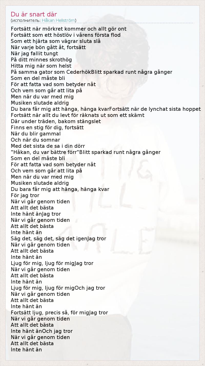 А как ты думаешь, о чем песня "Du är snart där" ?