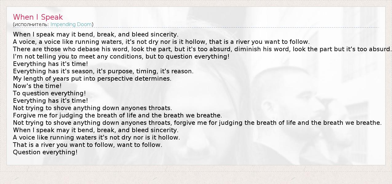 Это интересно:История Impending Doom начинается с 2005-го года, после совместных усилий вокалиста Брука Риверса и гитариста Мэнни Контрераса. В том же году на собственные средства группа записала демо - "The Sin and Doom of Godless Man" при поддержке независимого лейбла IWitness Media.Состав группы довольно часто менялся, и, чаще всего, музыкантам приходилось испытывать дефицит ударников, пока к их составу не присоединился... продолжение