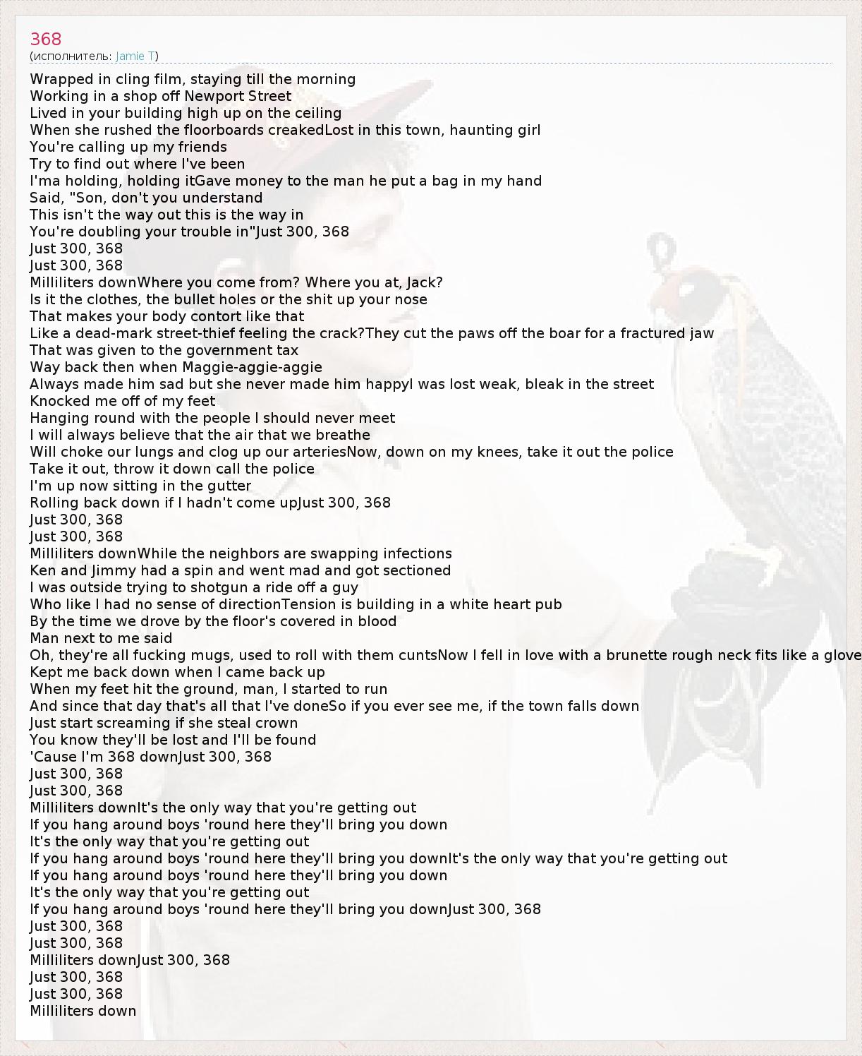 If you hang around boys 'round here they'll bring you downJust 300, 368