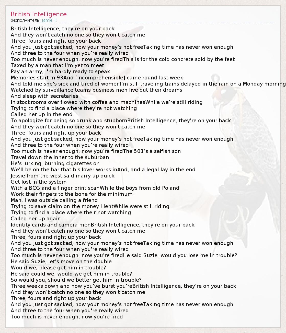А как ты думаешь, о чем песня "British Intelligence" ?