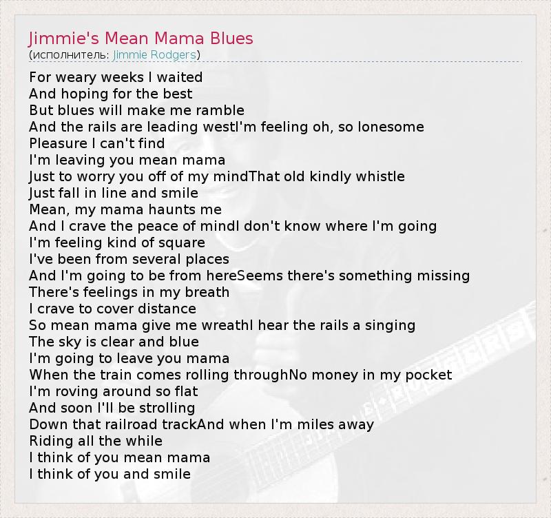 А как ты думаешь, о чем песня "Jimmie's Mean Mama Blues" ?