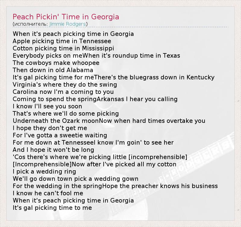 А как ты думаешь, о чем песня "Peach Pickin' Time in Georgia" ?
