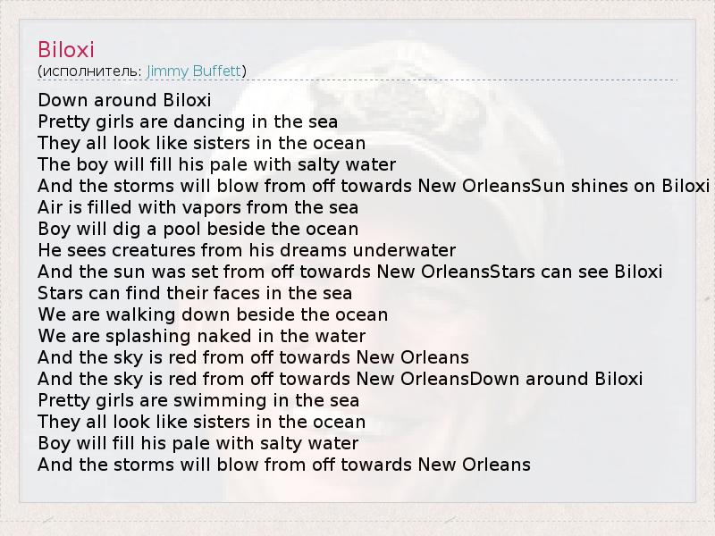 And the storms will blow from off towards New OrleansSun shines on Biloxi
