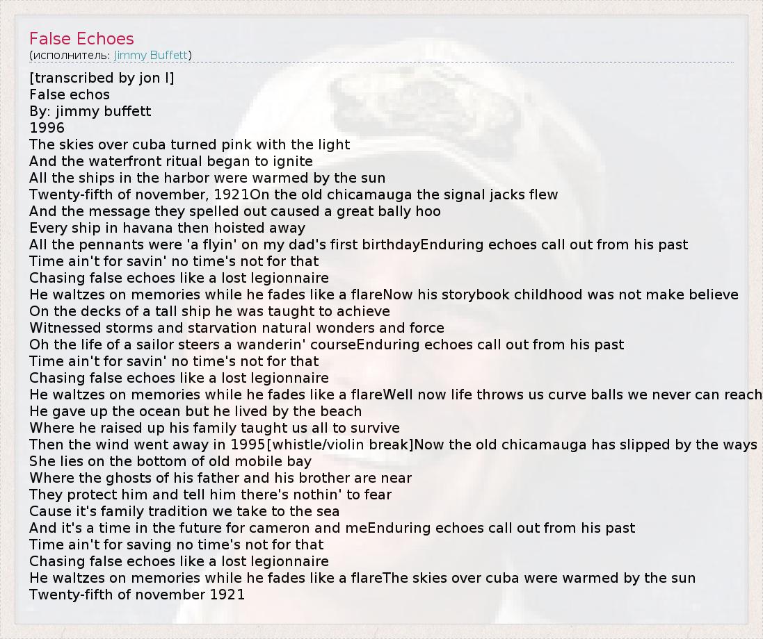 А как ты думаешь, о чем песня "False Echoes" ?