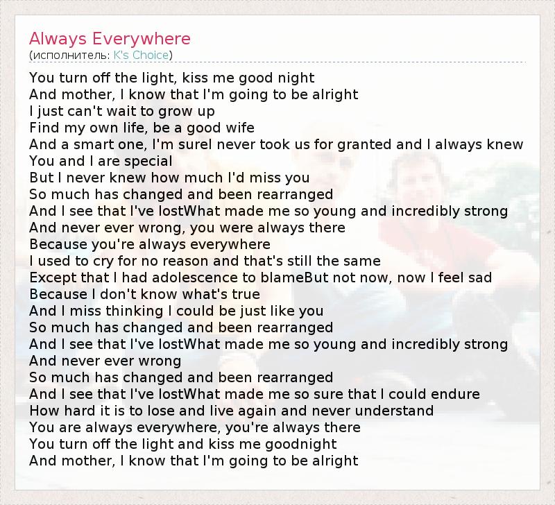 А как ты думаешь, о чем песня "Always Everywhere" ?