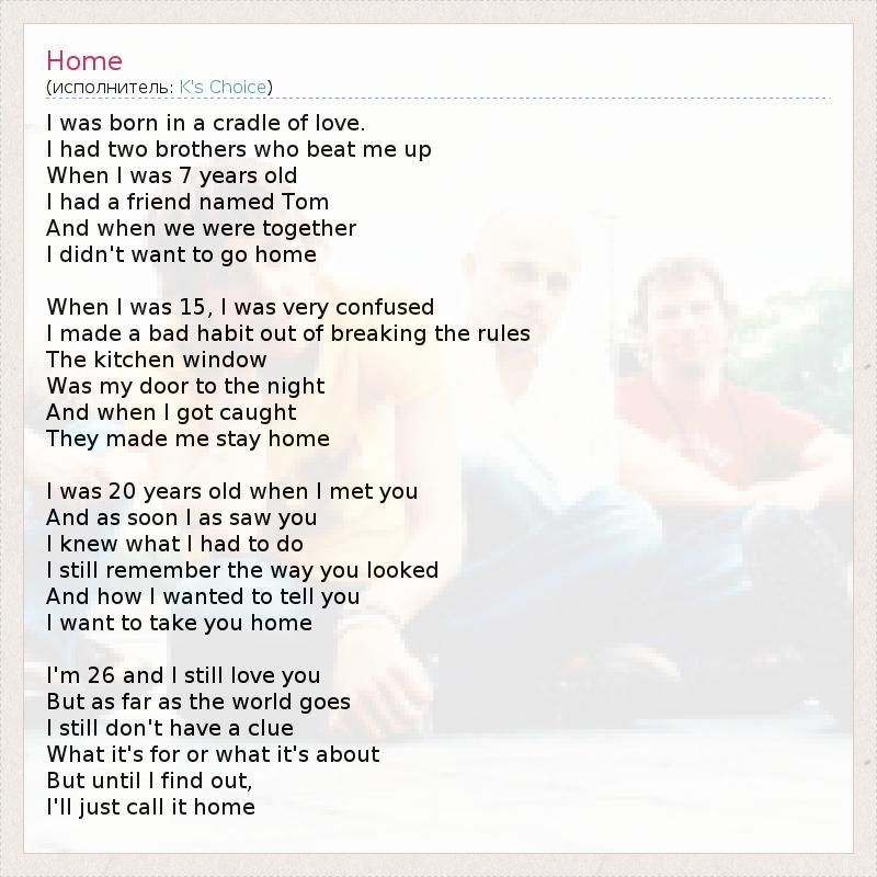 Это интересно:K’s Choice - бельгийская рок-группа из Антверпена. Их стиль можно охарактеризовать как гитарный рок, или фолк-рок.Состав:Сара Беттенс - вокал, гитара.Герт Беттенс - гитара, клавишные, вокал.Эрик Гроссман - бас-гитара.Ян ван Сихем младший - гитара.Коен Лиекенс - ударные.В настоящий момент участники группы работают над сольным проектами. Сара Беттенс выпустила альбом под... продолжение