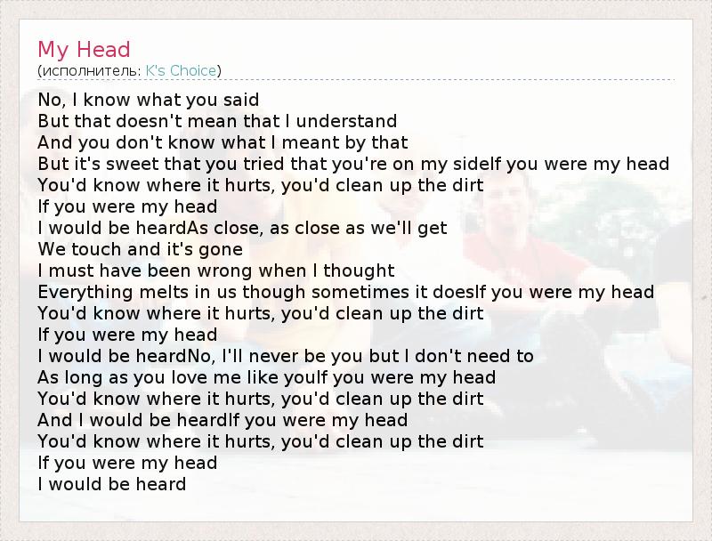 А как ты думаешь, о чем песня "My Head" ?