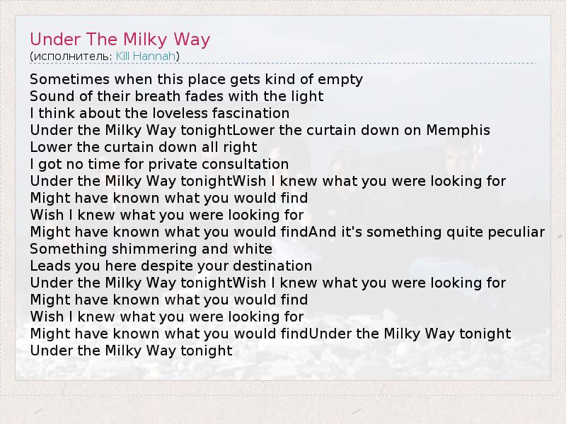 А как ты думаешь, о чем песня "Under The Milky Way" ?