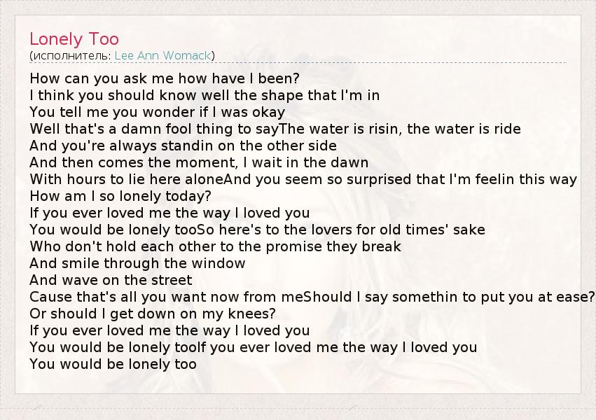 You would be lonely tooIf you ever loved me the way I loved you